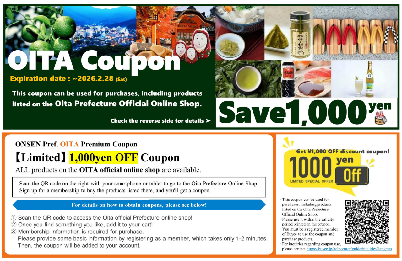 Use a Limited-Time Coupon to Purchase Souvenirs from Oita!