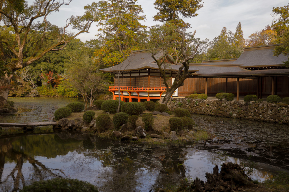 You’ll certainly find yourself transported as you stroll through the aromatic pine forests of these shrine grounds, passing the tranquil waters of Hishigata Pond, the lavishly roofed Kure Bridge, the Treasure Hall—displaying significant cultural artifacts—and the Meoto Iwa (Husband-and-Wife Rocks), believed to bring happiness when stepped on.