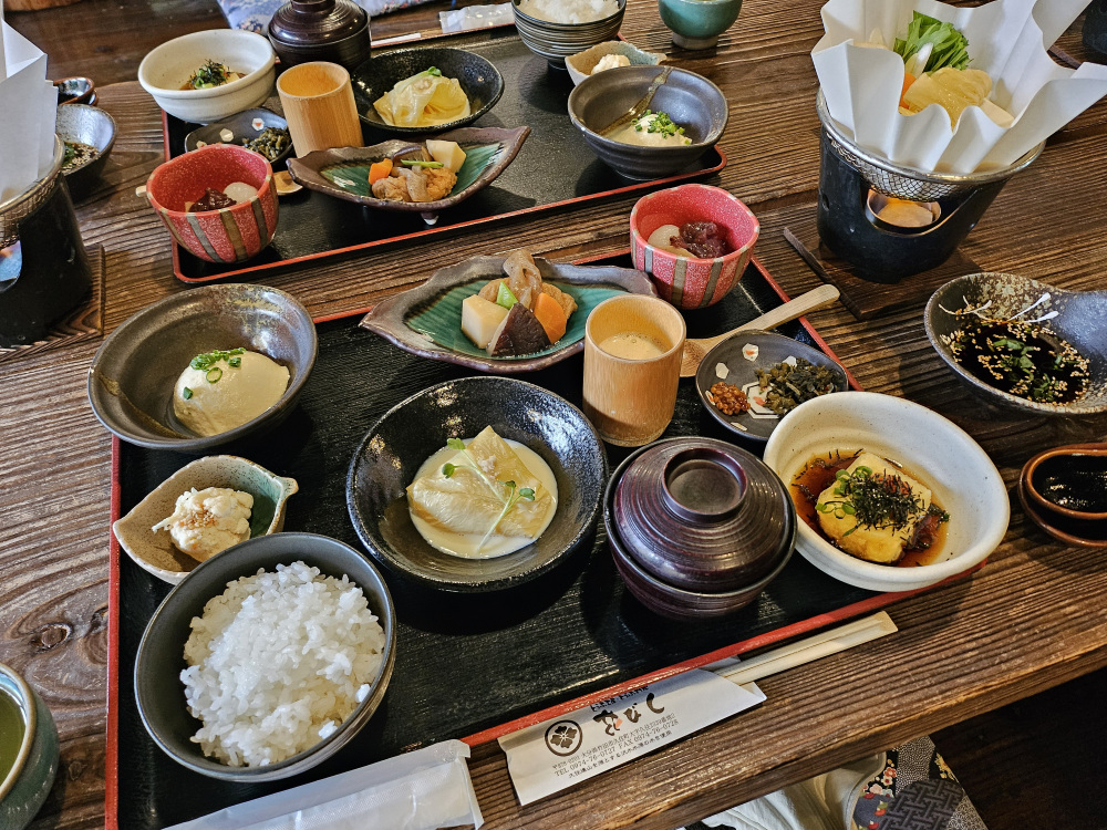 For a journey through all the different flavors, textures, and even temperatures of tofu, choose the Hanabishi Set Meal (花びし定食). You’ll get to experience everything from the traditional hiyayakko cold tofu and deep-fried agedashi tofu in a dashi-based broth to creamy, mashed tofu, vitamin-packed yuba tofu skin, and the real star of the show, yudofu silken tofu, gently bubbling away in a kombu-flavored hot pot.