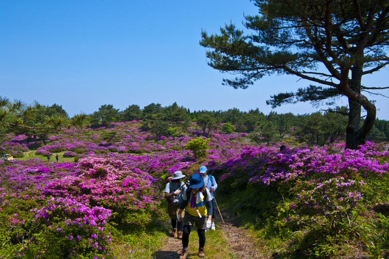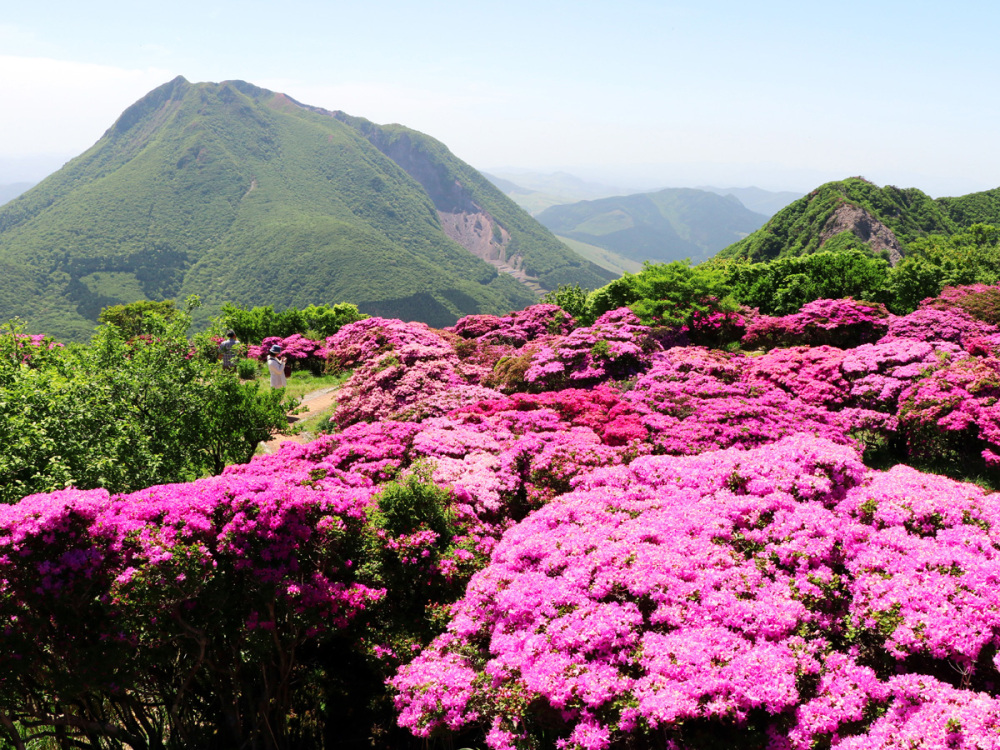 During its blooming season, entire mountainsides are covered in vibrant shades of pink, attracting many hikers and visitors from across Japan.
