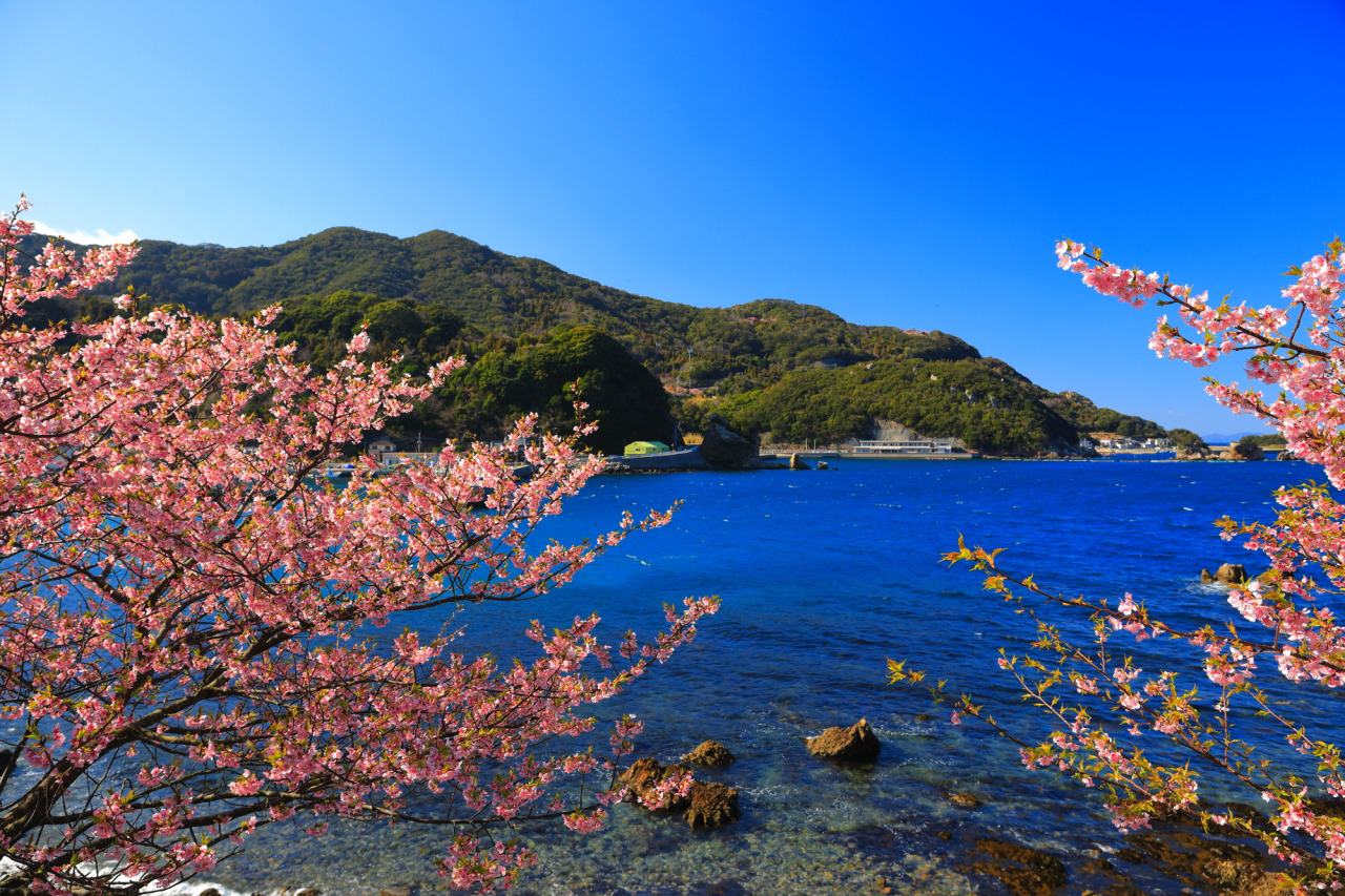 在津久見市的四浦半島,沿著當地道路種植了超過5,000棵河津櫻,點綴於各個地區,形成一條條美麗的櫻花景觀道路。每年約在2月上旬開始開花,並於2月中旬左右迎來最佳觀賞期。