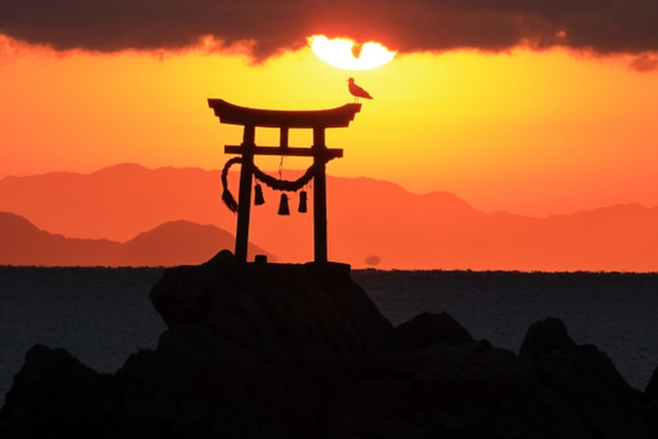 - 這是一座極為罕見、建於伸出海面的岩窟中的神社。原本被視為治癒農作物與家畜疾病之神,後來逐漸演變成祈求良緣與安產的神祇,特別是對女性的願望,被傳說「必能實現其中一項」。