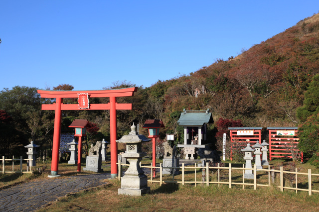 - 「鶴見山上權現一之宮」位於標高約1,300公尺的鶴見山上站前。沿著山頂遊步道前行,各處供奉著不同的神明,遊客可以一邊散步,一邊享受「巡札所」與「七福神巡禮」的樂趣。