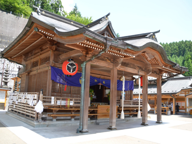 - 擁有一千一百多年歷史,自平安時代延續至今,是縣內屈指可數的古社之一。元旦凌晨0點一到,境內便鳴響大太鼓,隨即擠滿參拜者,大家一同拍手祈願新年心想事成,場面十分壯觀。