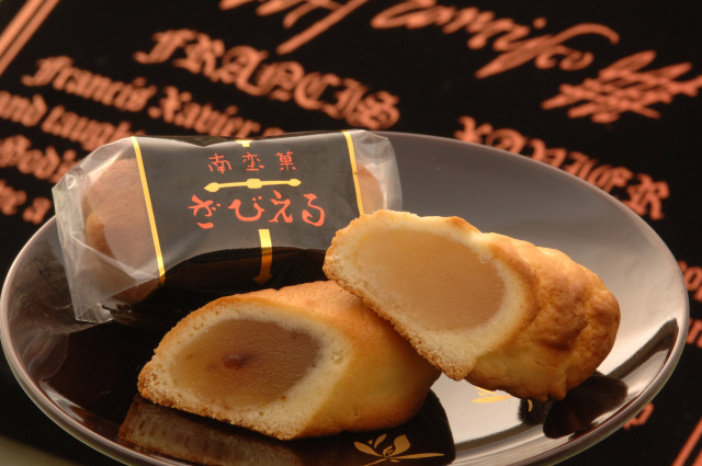 - 沙勿略是以曾來大分縣傳教的聖方濟‧沙勿略命名的點心,濕潤的外皮包裹著蘭姆葡萄乾風味的紅豆餡,奶油香與蘭姆酒香交織出絕妙滋味。