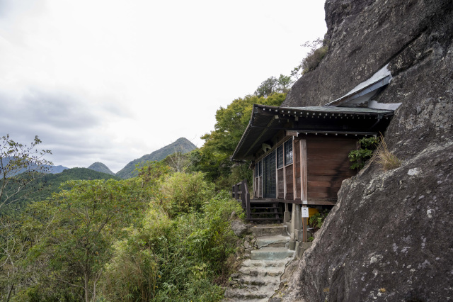 - 相傳仁聞菩薩曾在五辻不動修行。建築好似緊貼著險峻山勢的岩壁而建,並供奉著被視為佛教強力守護者的「不動明王」。