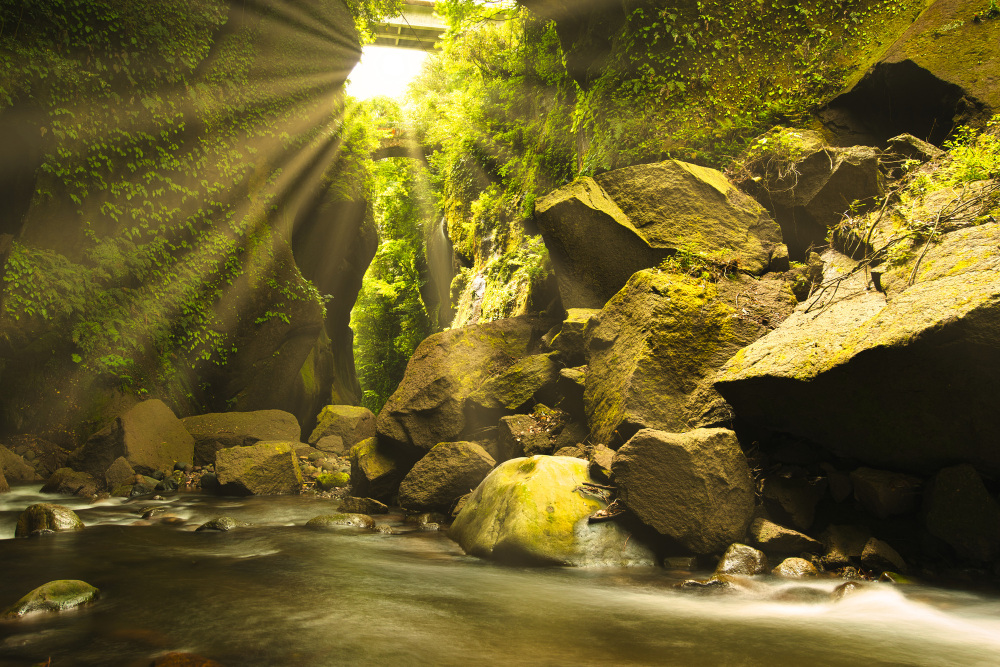 - 這是一處絕景,清澈見底的溪水在造型奇特的岩石間流淌。漫長歲月裡,河水不斷侵蝕岩層,造就了這些奇幻的岩貌。從吊橋俯瞰的景致令人屏息,能拍攝到充滿動感的照片。秋季更是著名的紅葉勝地。